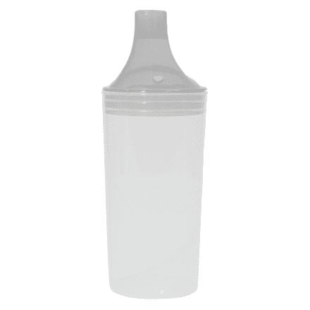 This Drinking Cup has a long mouthpiece making it easy to hold and comfortable to use. This specially-designed cup is supplied with two tops, one with a small hole for drinking fluids and the other featuring a larger hole for more solid food.