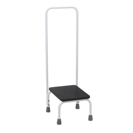 This stool is designed to assist with safely stepping up in the home with the security of a handrail. It is particularly useful over side of bath, to reach into cupboards or in any other household area. . It is approximately 10" high. The integral tall handrail provides additional support to users.Sturdy tubular steel frame is coated with Duradip® tough, peel-resistant plastic for durability. It is fitted with grey non slip PVC ferrules to ensure stability on different floor surfaces. The step itself is covered with a fluted rubber top provides a slip resistant surface for user safety. The maximum user weight 140kg (22st)